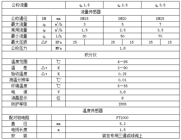 二、戶用超聲波熱量表技術(shù)數(shù)據(jù)