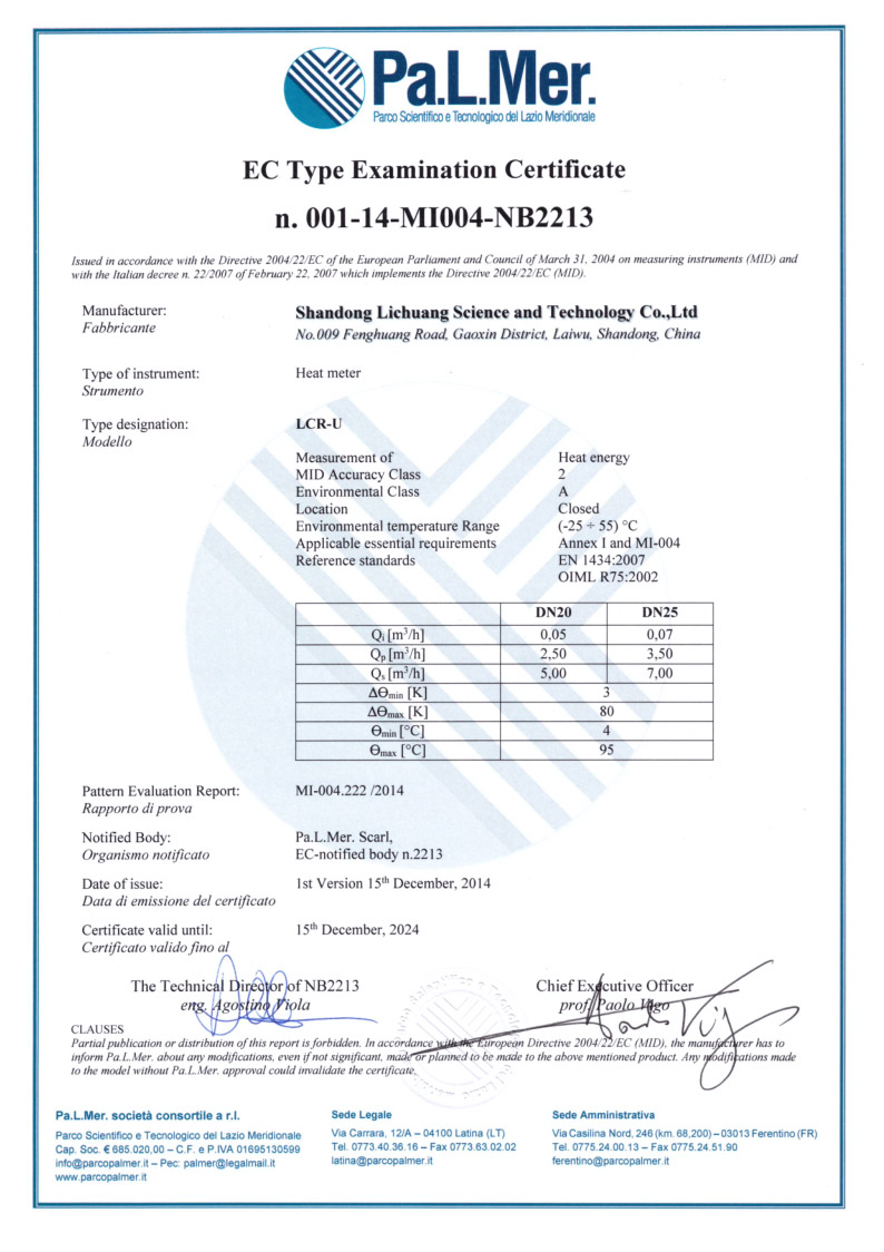 力創(chuàng)戶用超聲波熱量表MID認(rèn)證