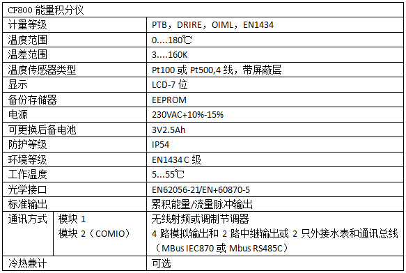 CF800能量積分儀是一款高精度超聲波熱量表積分儀,適用于優(yōu)化換熱站能源消耗和能源管理;CF800積分儀同時(shí)也是通訊專家,有多種通訊方式;CF800積分儀還具有標(biāo)準(zhǔn)的能量和流量中繼輸出,輸出的信號(hào)適用于工業(yè)標(biāo)準(zhǔn)。這種應(yīng)用的靈活性使CF800具備所有現(xiàn)代電信通訊的優(yōu)勢(shì),保證了與樓宇和過(guò)程控制系統(tǒng)外圍設(shè)備的兼容性。