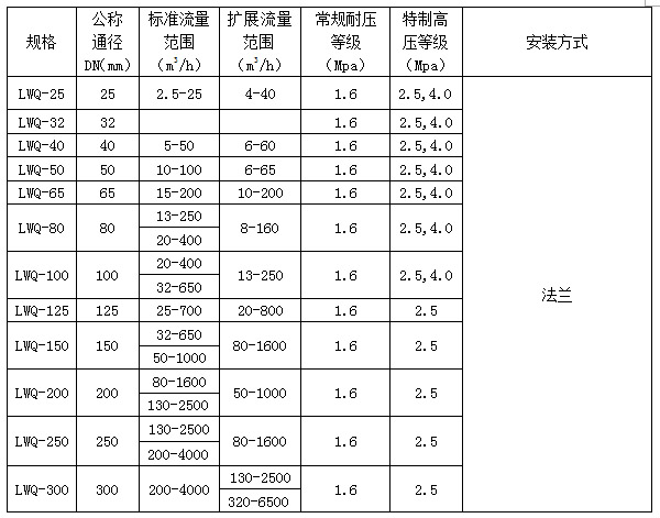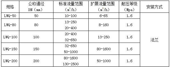 1、流量計規(guī)格、基本參數(shù)和性能指標