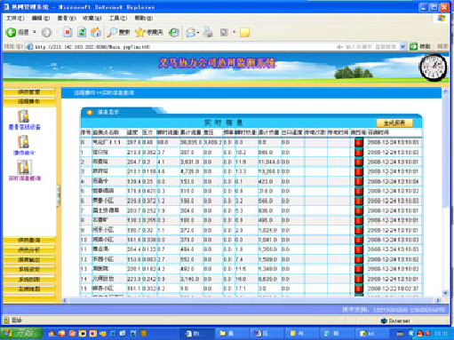 GPRS通信方式更適合于熱網,在供熱的過程中有大量的數據需要工作人員及時的采集、記錄,如果這些數據都要人工采集、記錄的話勢必給工作人員巨大的工作量,而且效率不高,于是我公司根據熱力行業的實際工作情況設計了一套完整的熱網監測管理通信解決方案,可以實現各站點瞬時流量、頻率、壓力、溫度、流體密度、累計流量、儀表內部時間的監測,并且通過增加現場儀表可以采集更多的數據。采集的參數可以通過報表輸出或者以趨勢曲線的方式顯示、打印,以便供熱部門及時發現供熱的異常情況,管理和服務好用戶。
